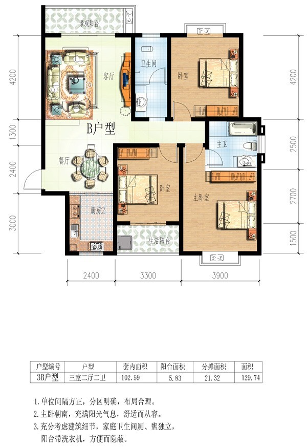 户型:3 室